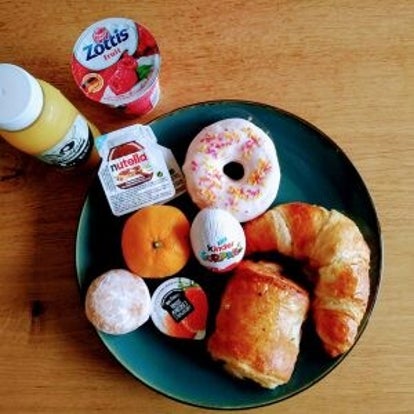 Friendsontbijt en een mooi groot boeket extra, aan huis geleverd.